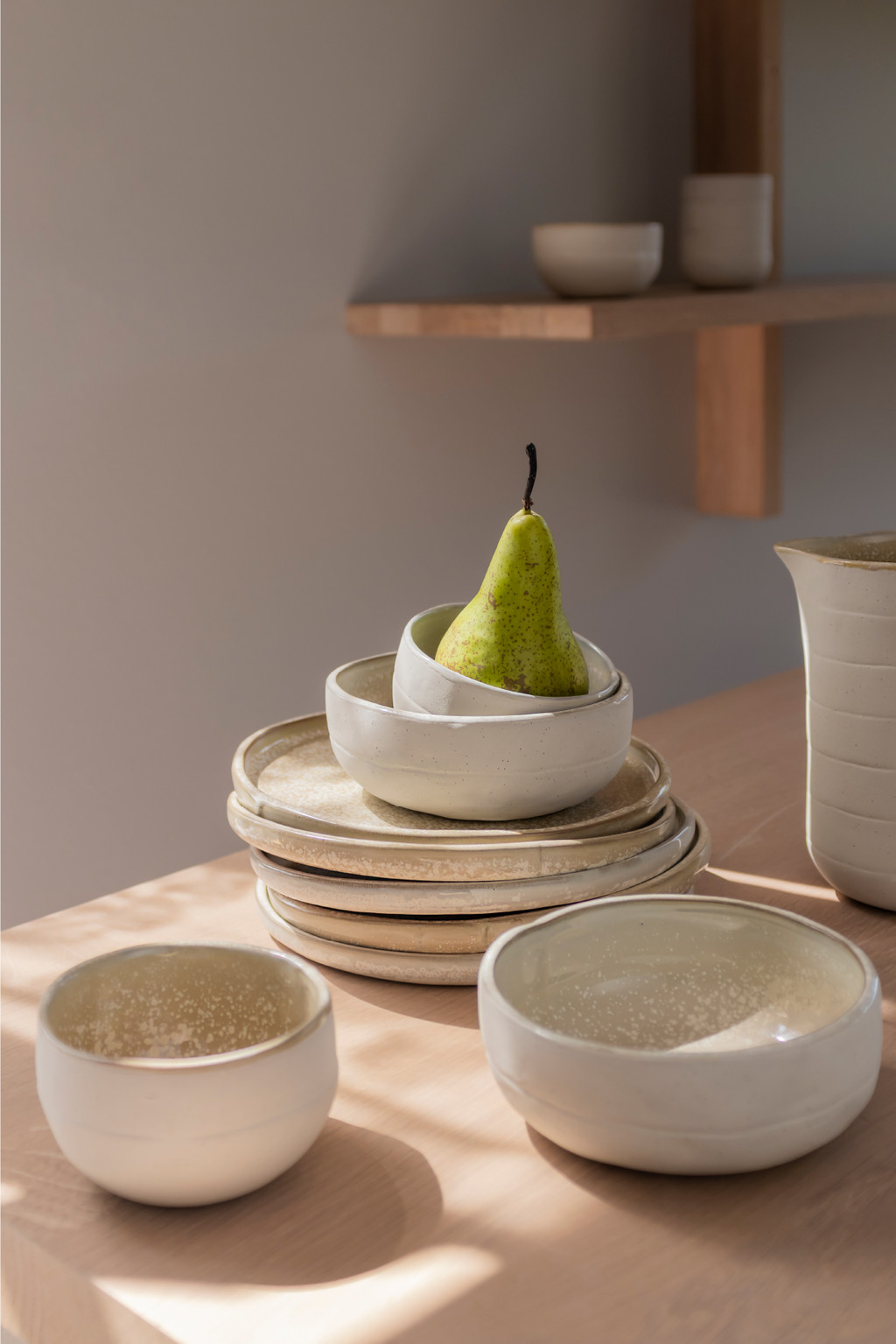 샌드 그레인(SAND GRAIN)은 Mette Ditmer가 세심하게 손수 제작한 테이블웨어 시리즈로, 전통적인 장인정신 기술에서 영감을 받아 불완전함을 예술로 받아들입니다. 원시적인 표면은 본래의 형태를 그대로 유지한 세라믹에 대한 생각을 유도하고, 외부의 거친 표면은 촉각적 탐구를 유도합니다. 각 제품의 내부는 식기를 태울 때 높은 온도로 인해 변형되는 과정을 겪는 크리스탈 유약으로 장식되어 있습니다. 그 결과 매력적인 주근깨가 나타나 아이템마다 유니크함을 더해줍니다. 이 시리즈는 석기로 제작되었으며 부드럽고 유기적인 형태를 가지고 있어 개인적이고 예술적인 느낌을 줍니다. 두 가지 서로 다른 유약의 조합은 서로를 보완하고 강조하며 모든 아이템을 수공예적 표현으로 독특하게 만듭니다. SAND GRAIN 접시로 일상적인 테이블 세팅을 향상시켜 완벽한 불완전함을 더해보세요. 유행을 타지 않는 따뜻한 밀짚 색상은 다양한 색상 구성과 쉽게 혼합하고 매칭할 수 있어 진정한 개인 테이블 배열을 만들 수 있습니다. 이 접시 2개 세트는 브런치 세팅, 간단한 간식 또는 작은 요리를 담기에 적합합니다. |