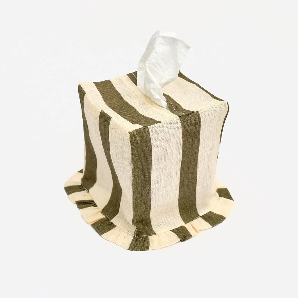 고급 유럽산 린넨으로 제작된 티슈 상자 커버는 친환경 염료를 사용하여 디지털 인쇄되었습니다. 지속가능성 |