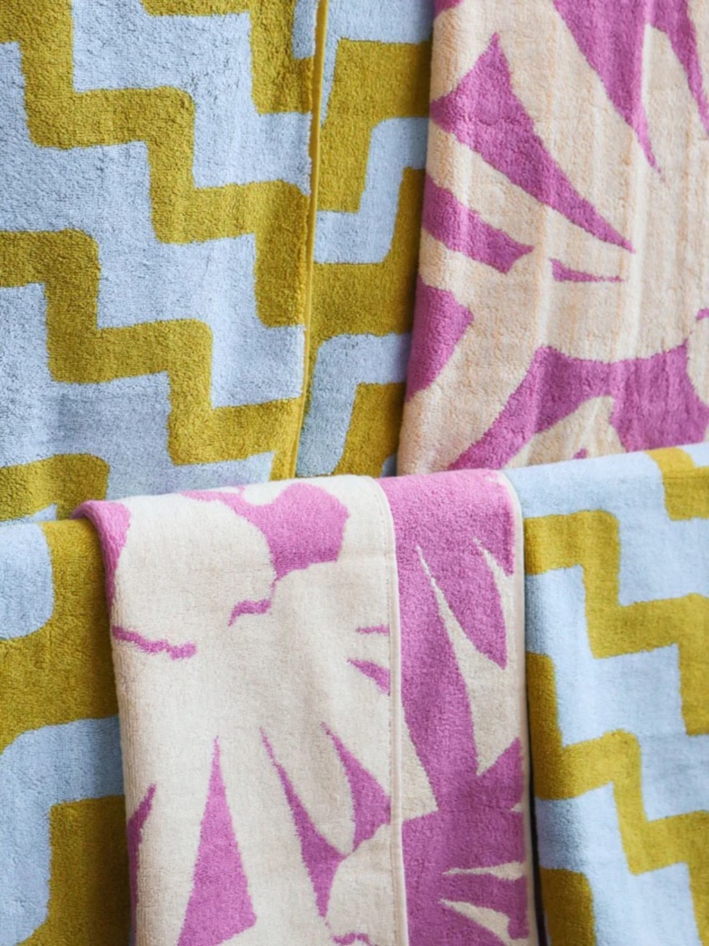 오키드와 크림 컬러의 추상적인 플로럴 그래픽이 셀프 케어 공간에 딱 맞는 강렬하고 여성스러운 디자인을 완성합니다.