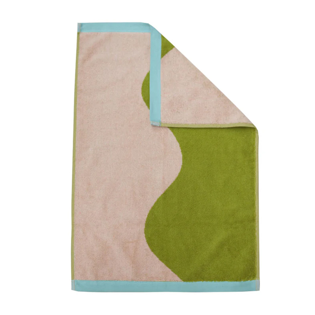 유럽 빈티지 테마파크에서 영감을 받은 이 타월은 피스타치오와 아몬드 컬러의 추상적인 디자인에 아쿠아 컬러의 테두리가 특징입니다. 매우 부드러운 핸드타월은 100% 유기농 면으로 만들어져 흡수성이 뛰어나고 손에 닿는 느낌이 고급스럽습니다. |