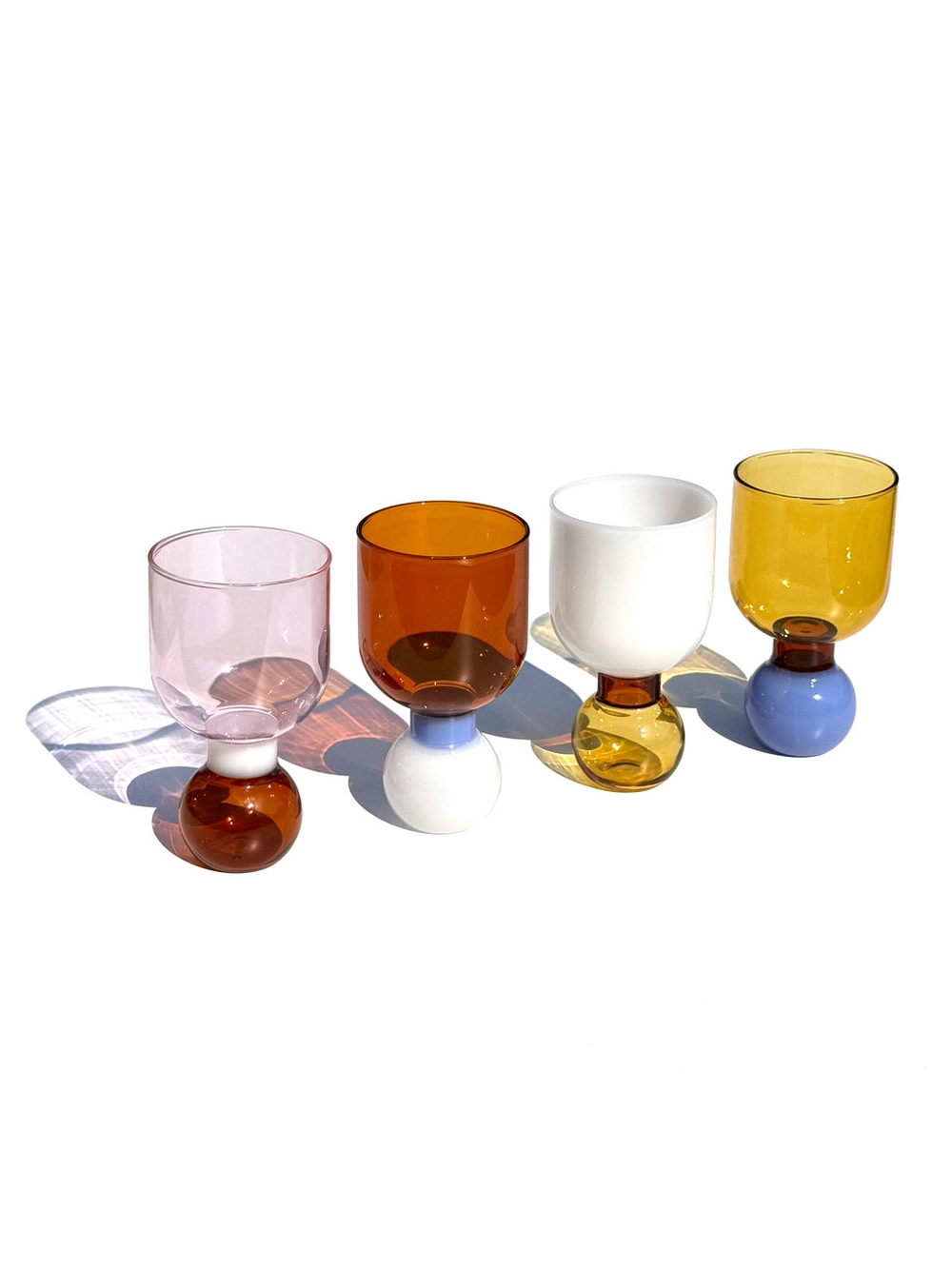 컬러로 완성되는 와인 글라스 세트. 서로 다른 컬러가 만들어내는 리듬으로 테이블 위에 자연스럽게 포인트를 더합니다. 가볍고 안정적인 특수 유리 소재에 핸드메이드 디테일이 더해져 일상에서도 편안하게 사용할 수 있습니다. 와인뿐만 아니라 샴페인, 에이드 등 다양한 음료를 담기에 잘 어울리며, 세트 구성으로 선물용으로도 부담 없이 선택하기 좋습니다. |
