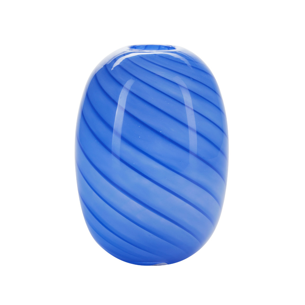 GLASS VASE SWIRED OVAL SHAPE - BLUE